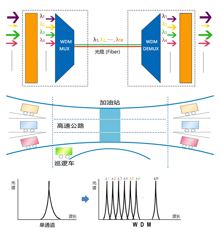 简单来说,我们也可以把WDM看作是一条公路——不同类型的车辆涌入这条公路,到了目的地之后再各走各的。